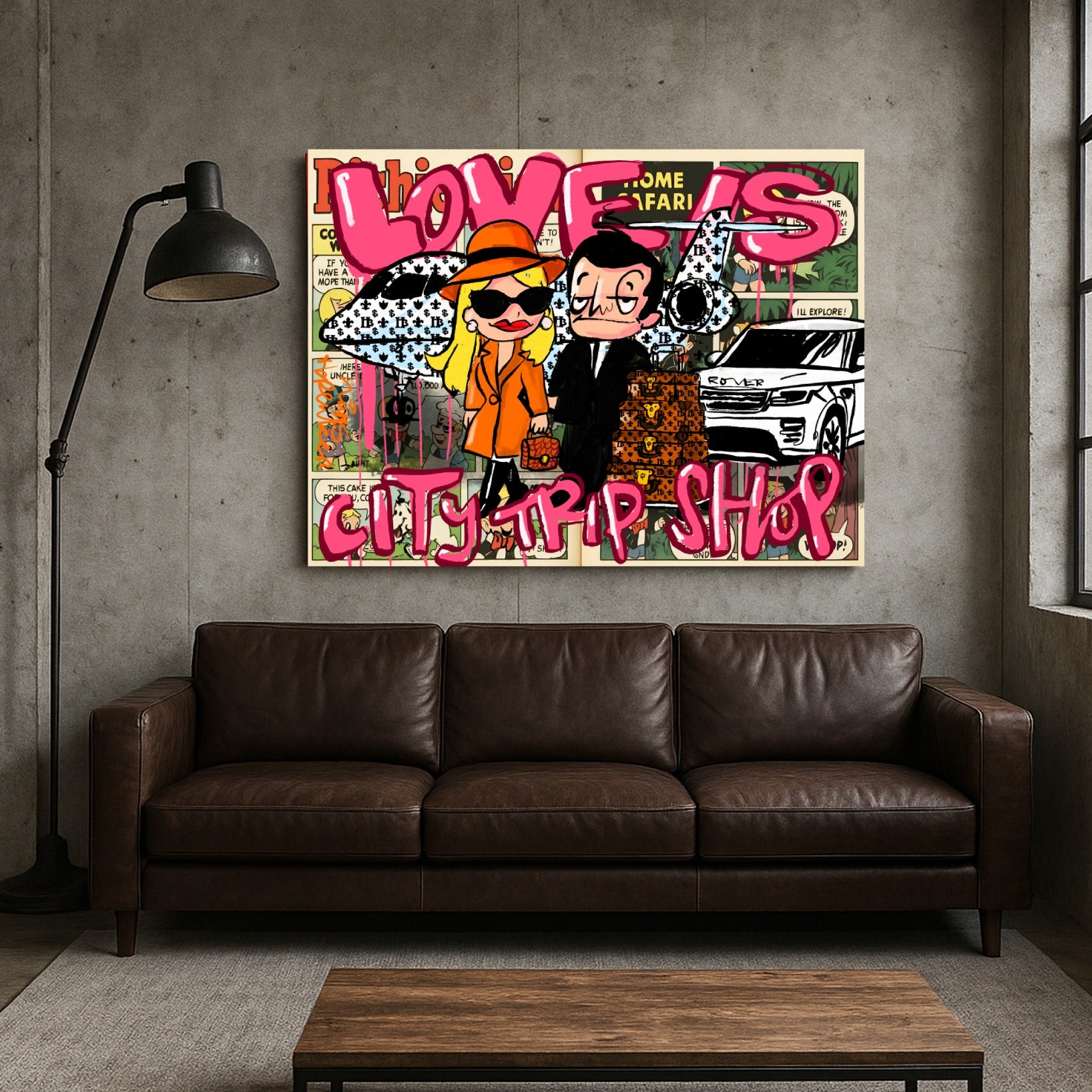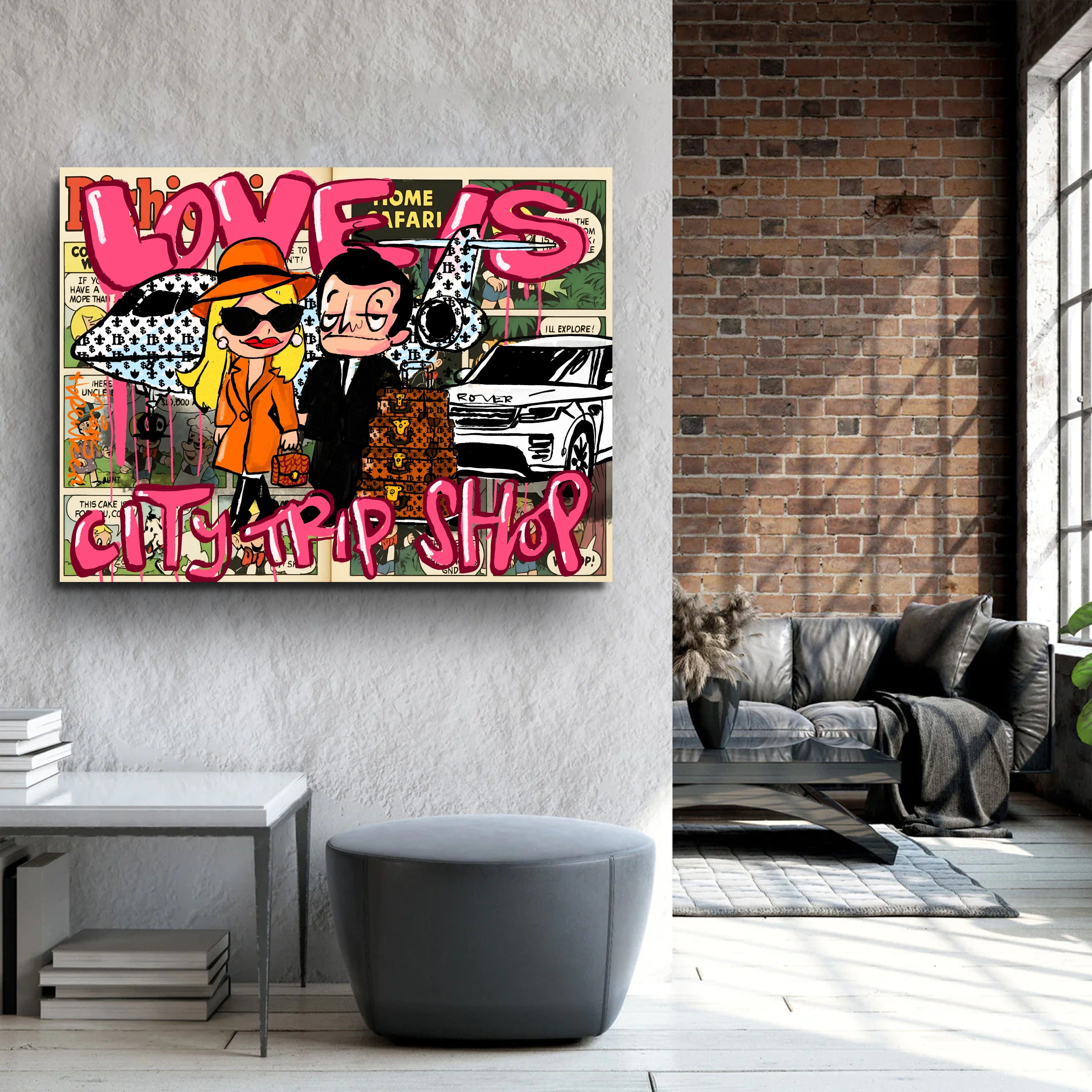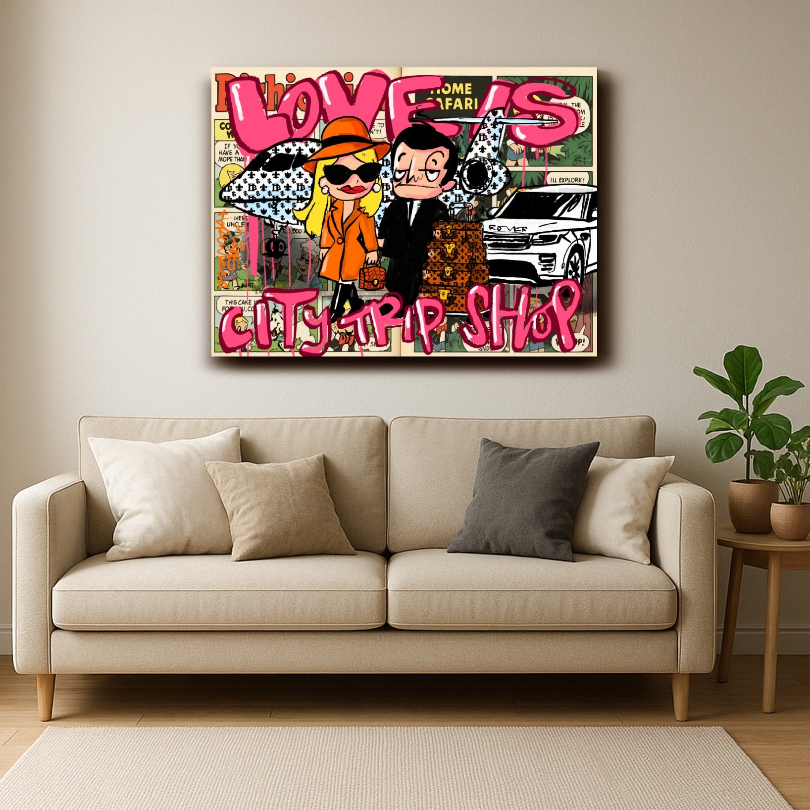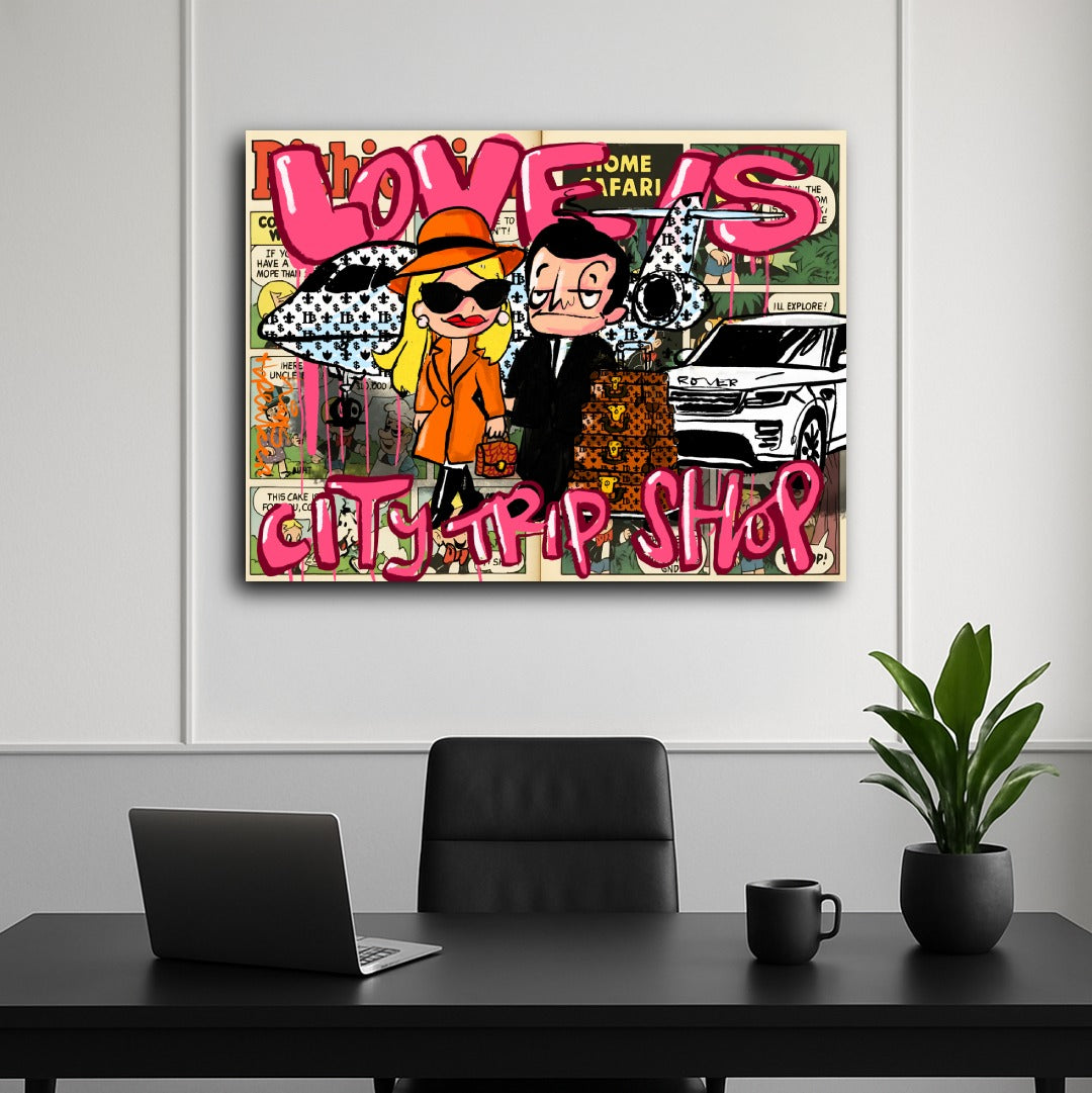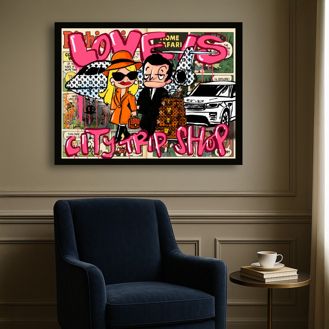 Lovers city trip shop. Love is a citytrip! Hans Breuker art