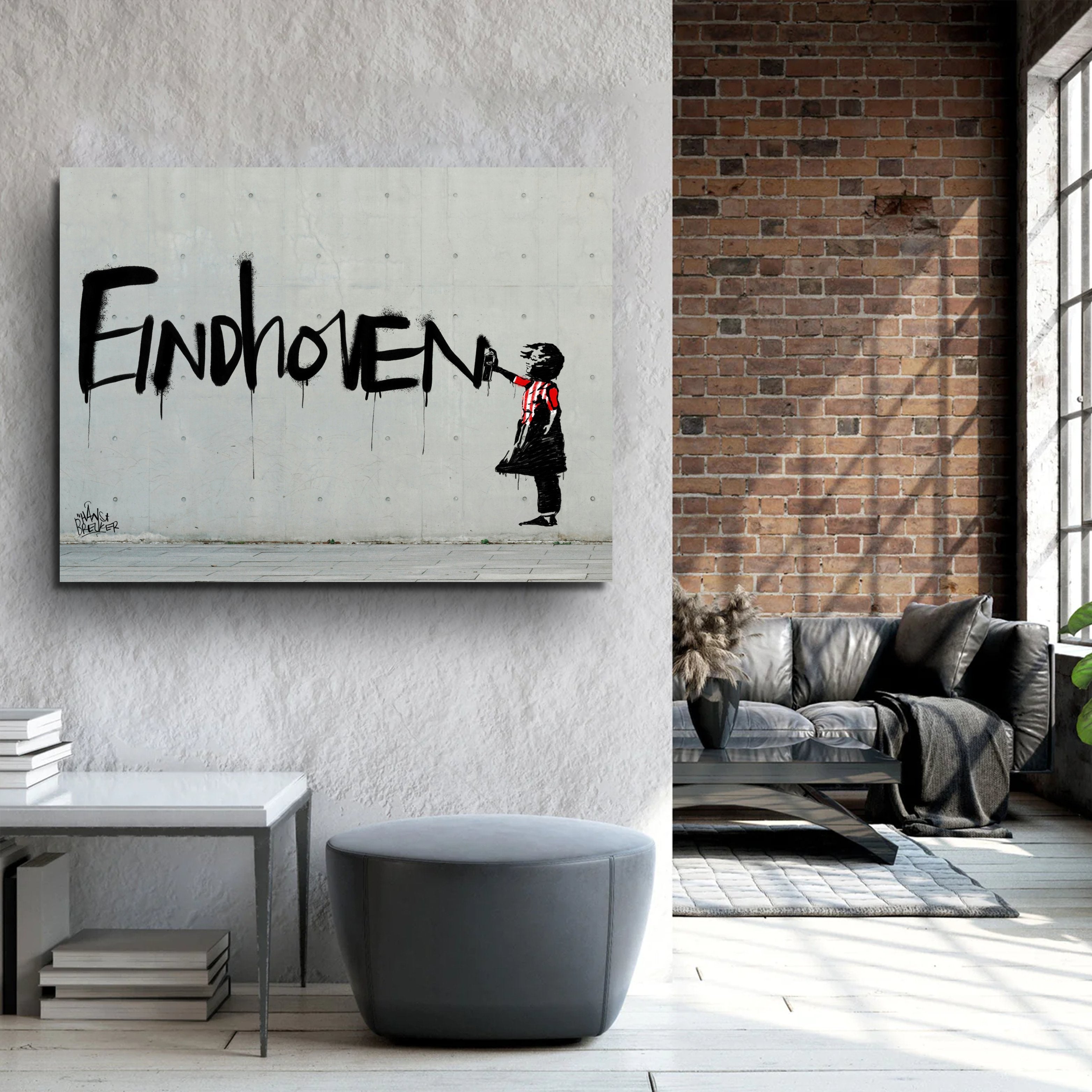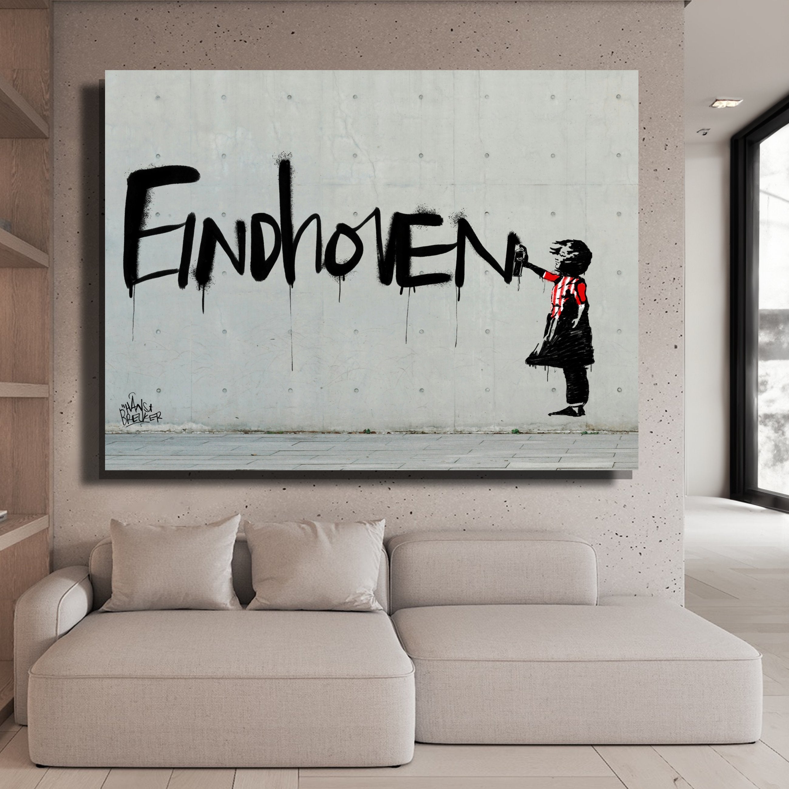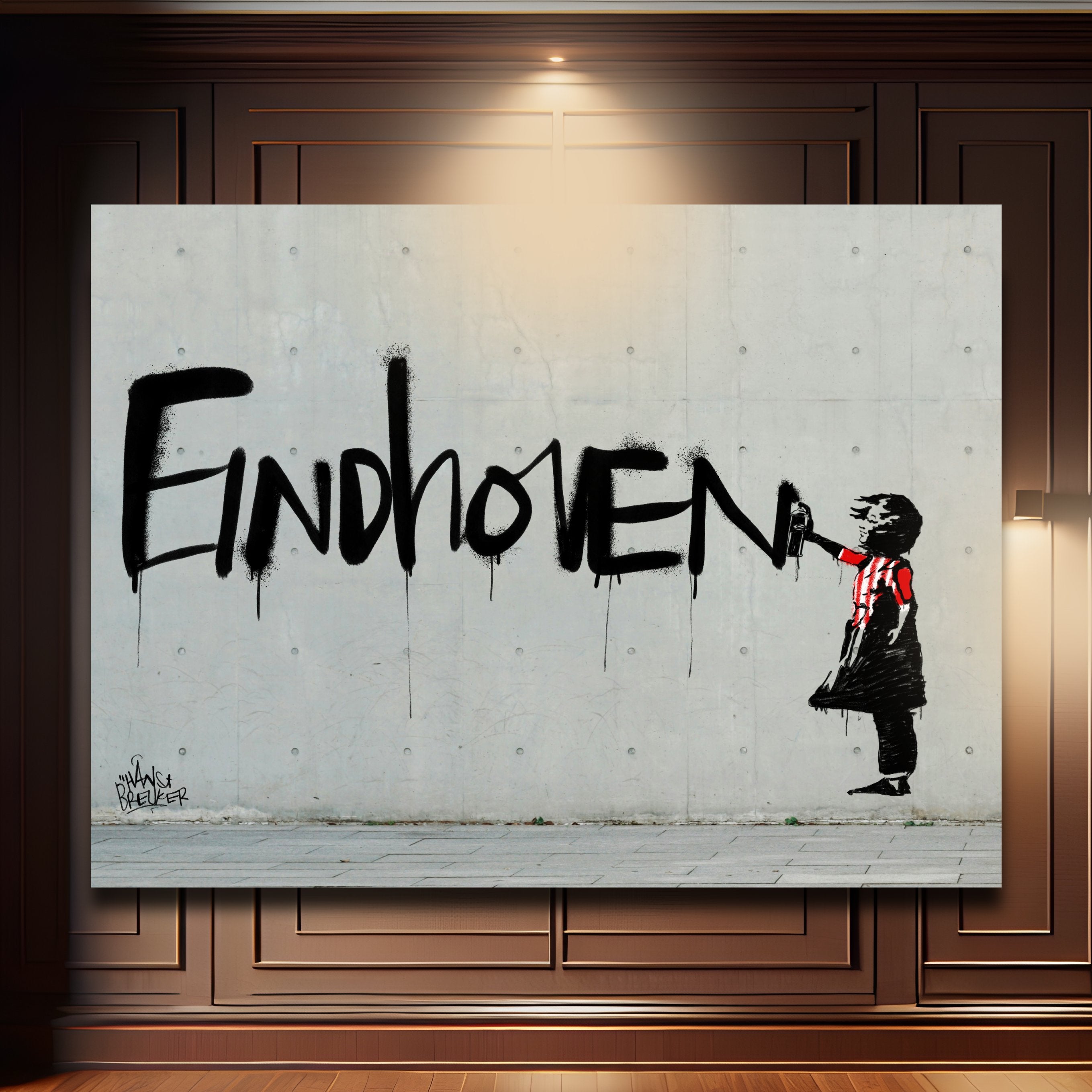 Spuitbusmeisje Eindhoven is een Banksy parodie en geschikt als PSV poster of voor iedereen die in Eindhoven woont.