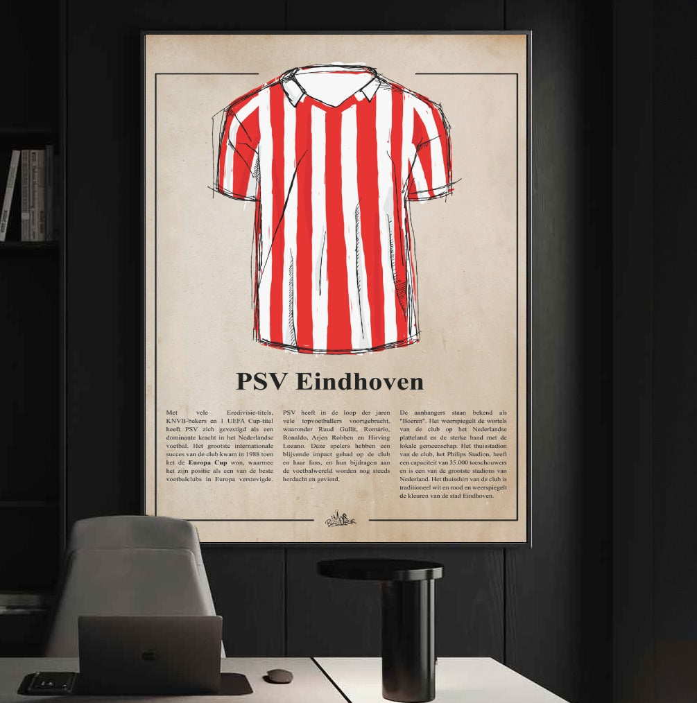 Dit artwork is geïnspireerd op PSV Eindhoven. Er bestaat geen officiële licentie of samenwerking tussen de club en kunstenaar Hans Breuker.