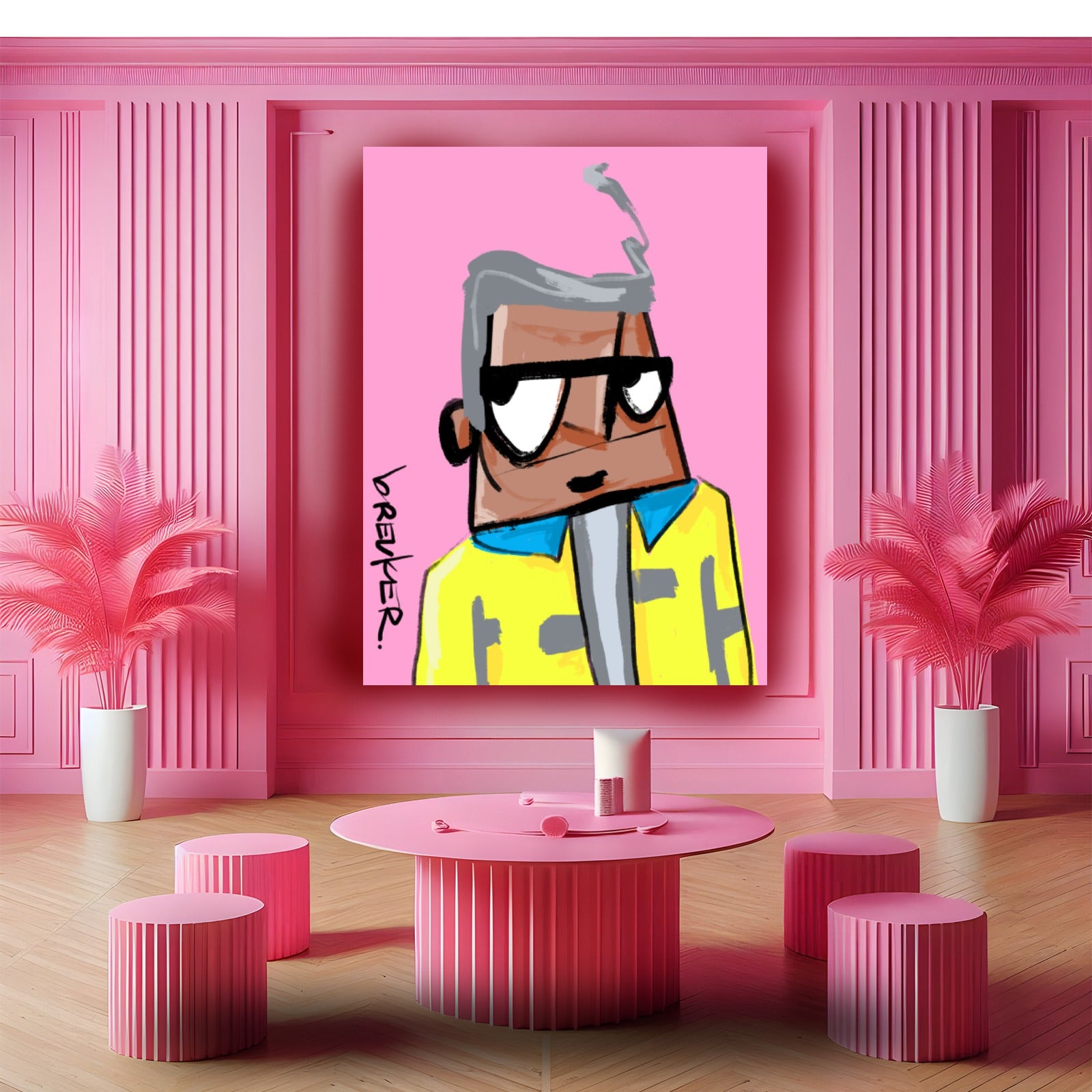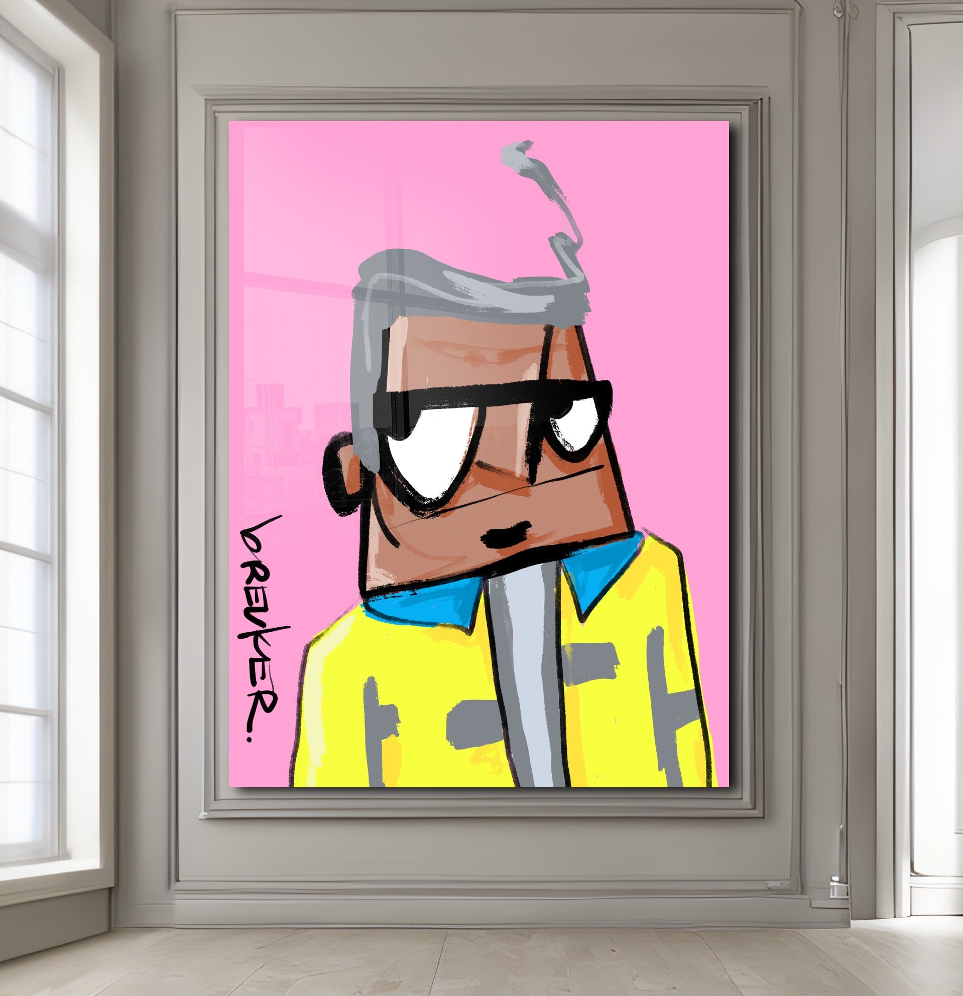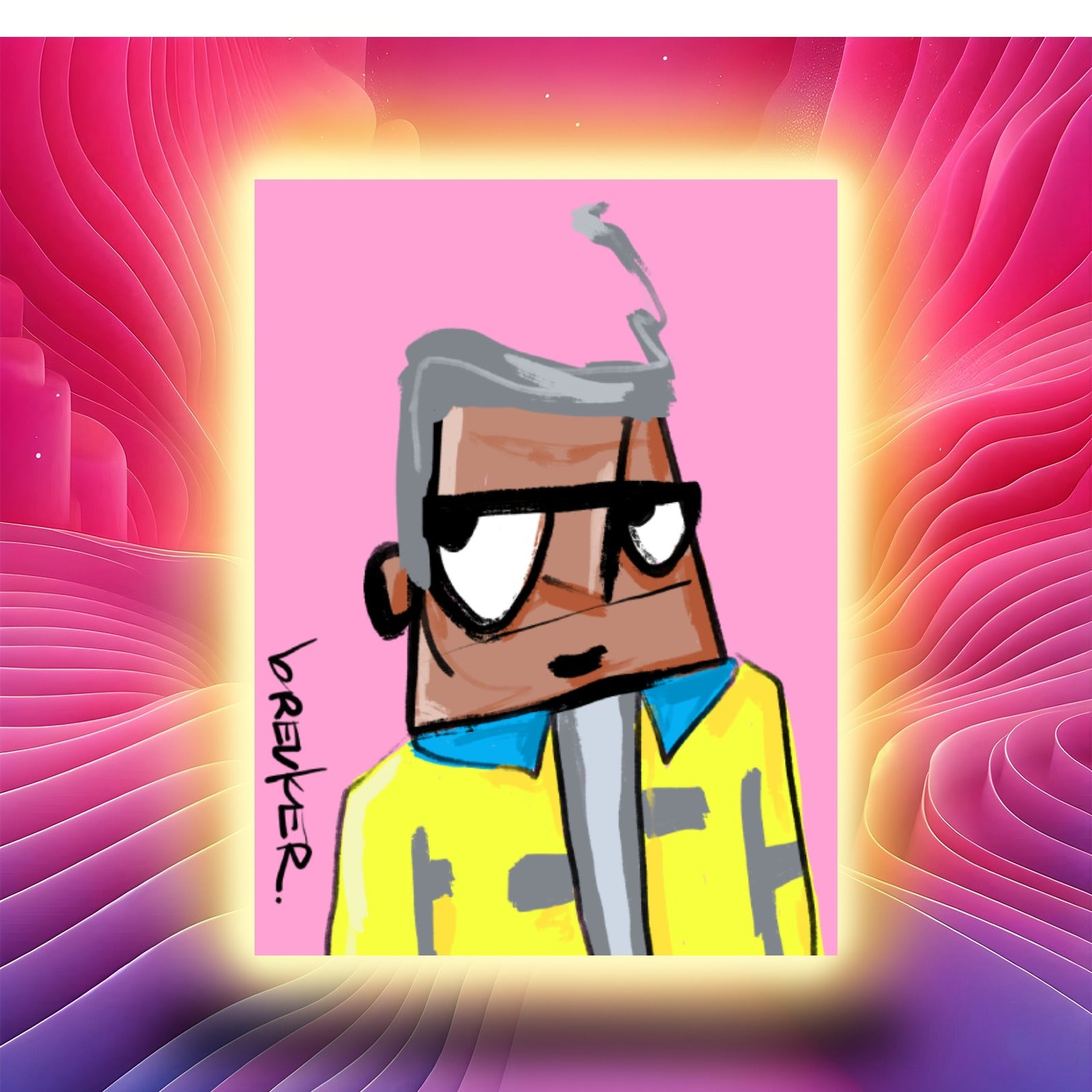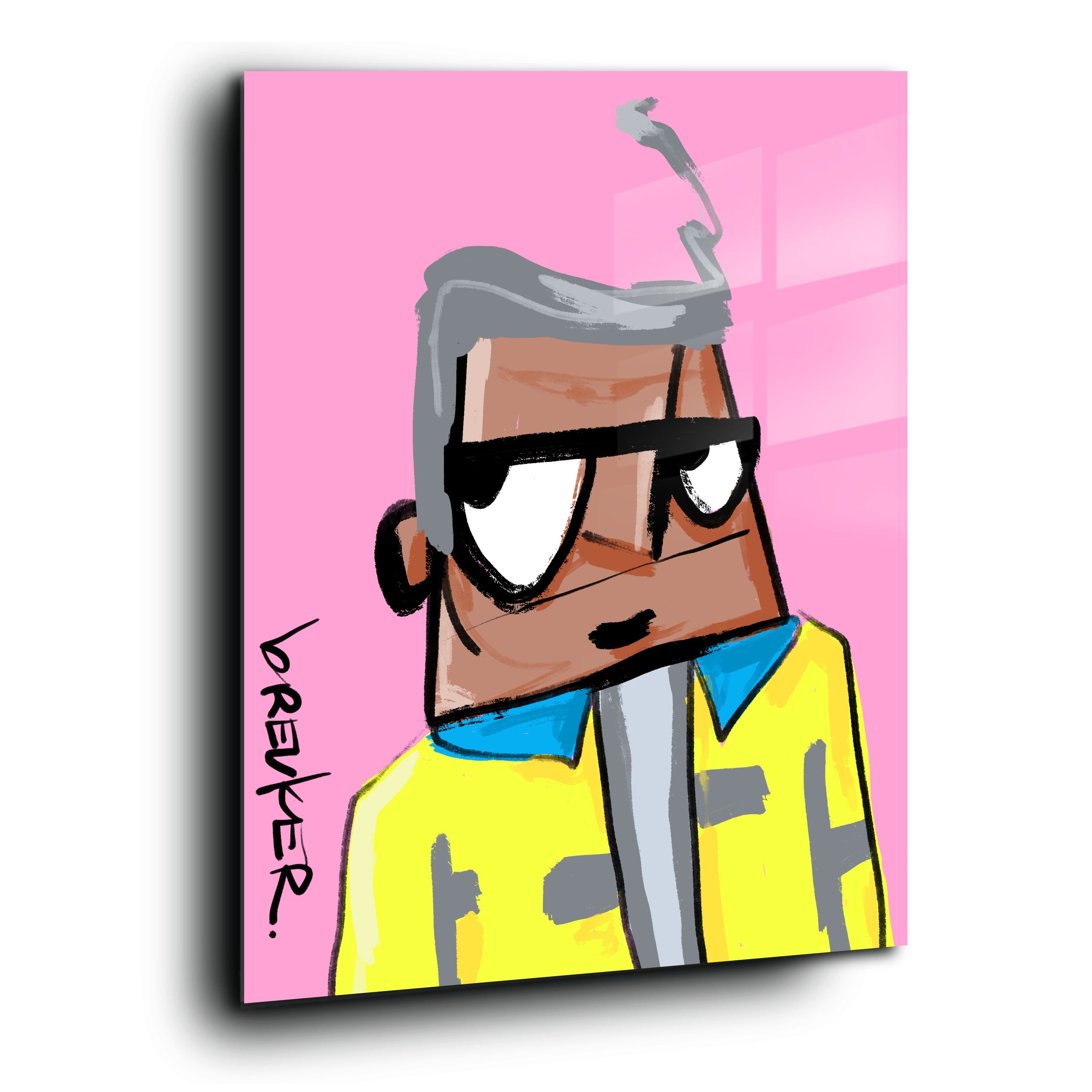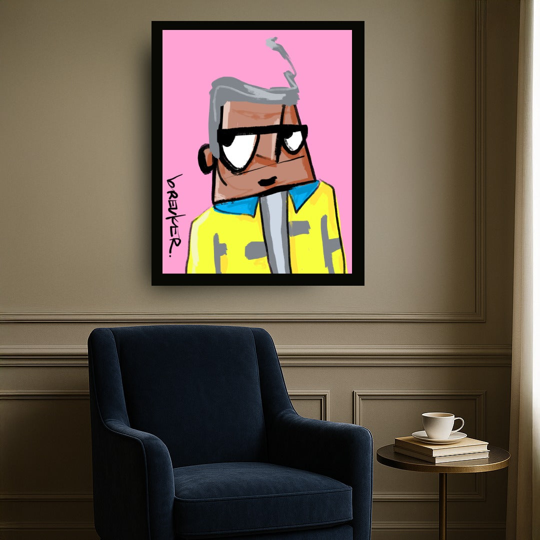 Cleane achtergronden, krachtige kleurcombinaties en een directe, handgetekende energie. Geïnspireerd door de herhaling uit pop art en de verzamelcultuur van NFT’s — maar altijd fysiek, altijd authentiek.