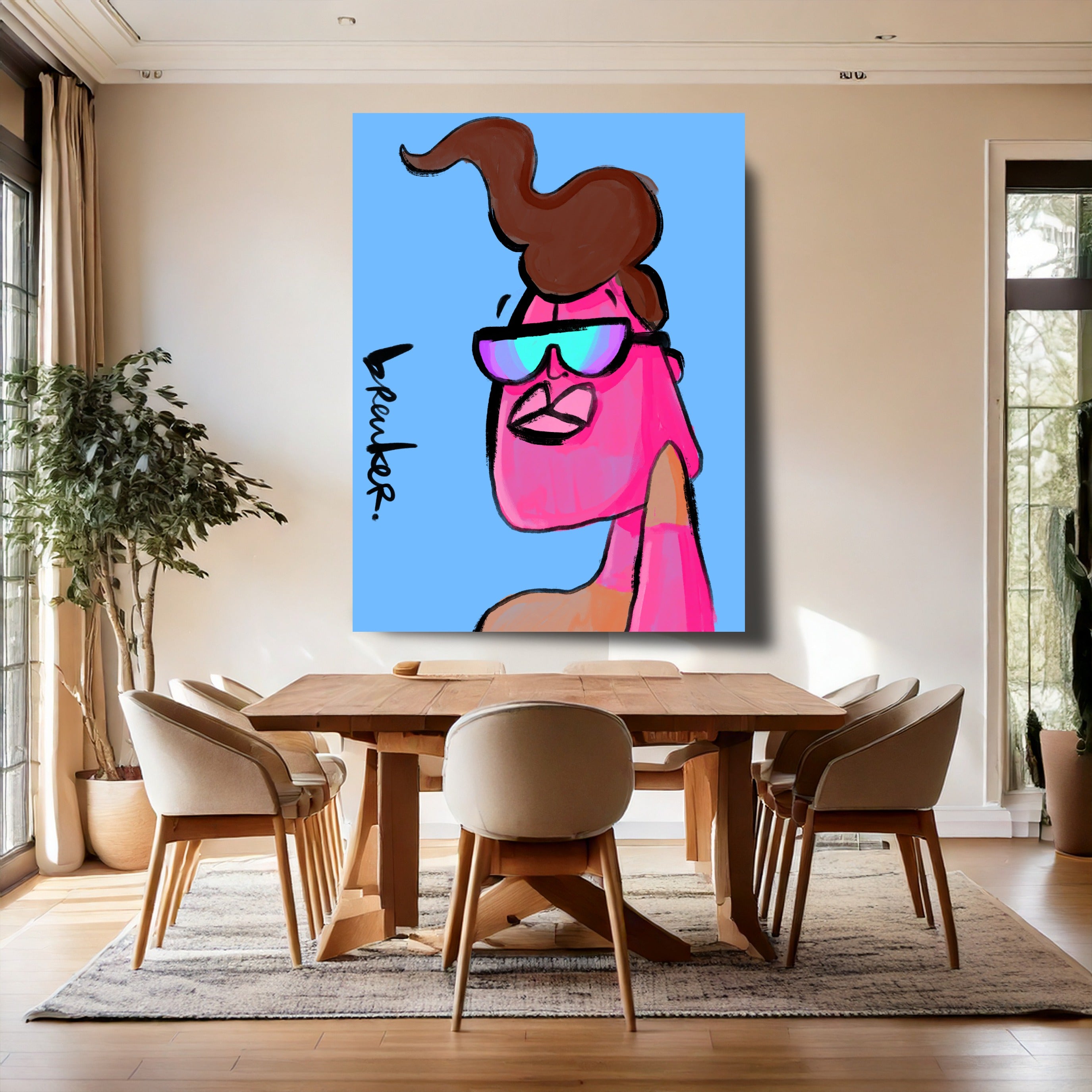 Cleane achtergronden, krachtige kleurcombinaties en een directe, handgetekende energie. Geïnspireerd door de herhaling uit pop art en de verzamelcultuur van NFT’s — maar altijd fysiek, altijd authentiek.