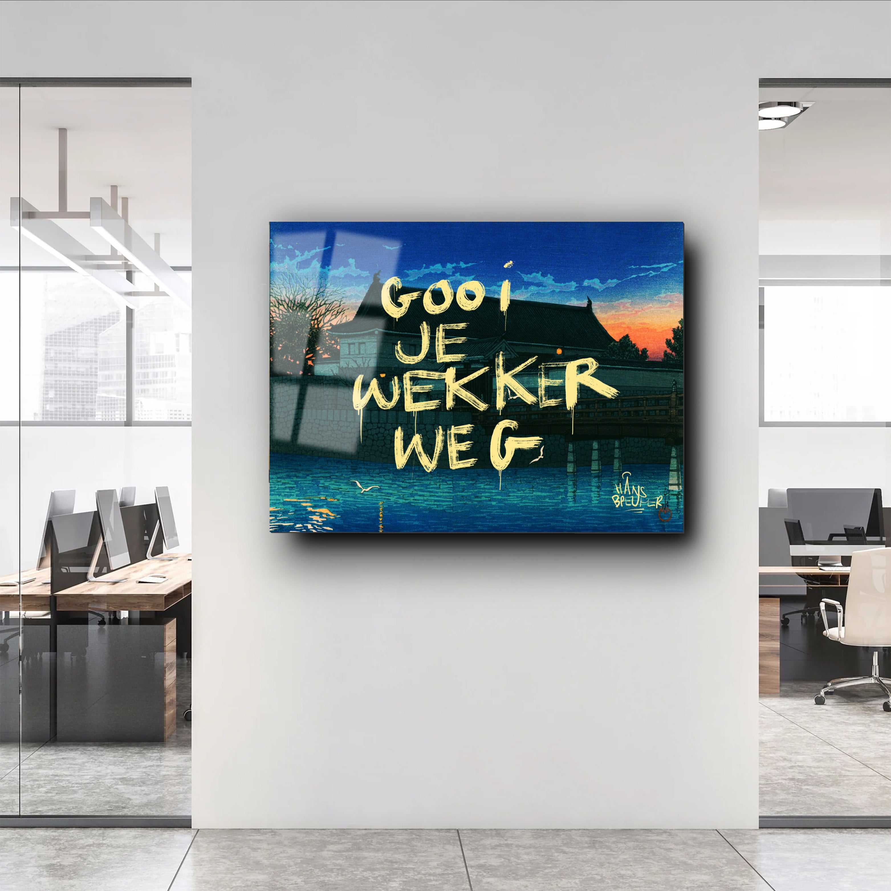 De quote “Gooi je wekker weg” van Hans Breuker is krachtig, eenvoudig en confronterend. Het is geen grap en geen satire, maar een uitnodiging om los te komen van opgelegde ritmes en verwachtingen. Dit werk staat voor vrijheid, zelfbeschikking en leven op je eigen tempo.