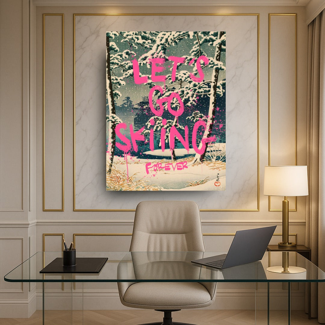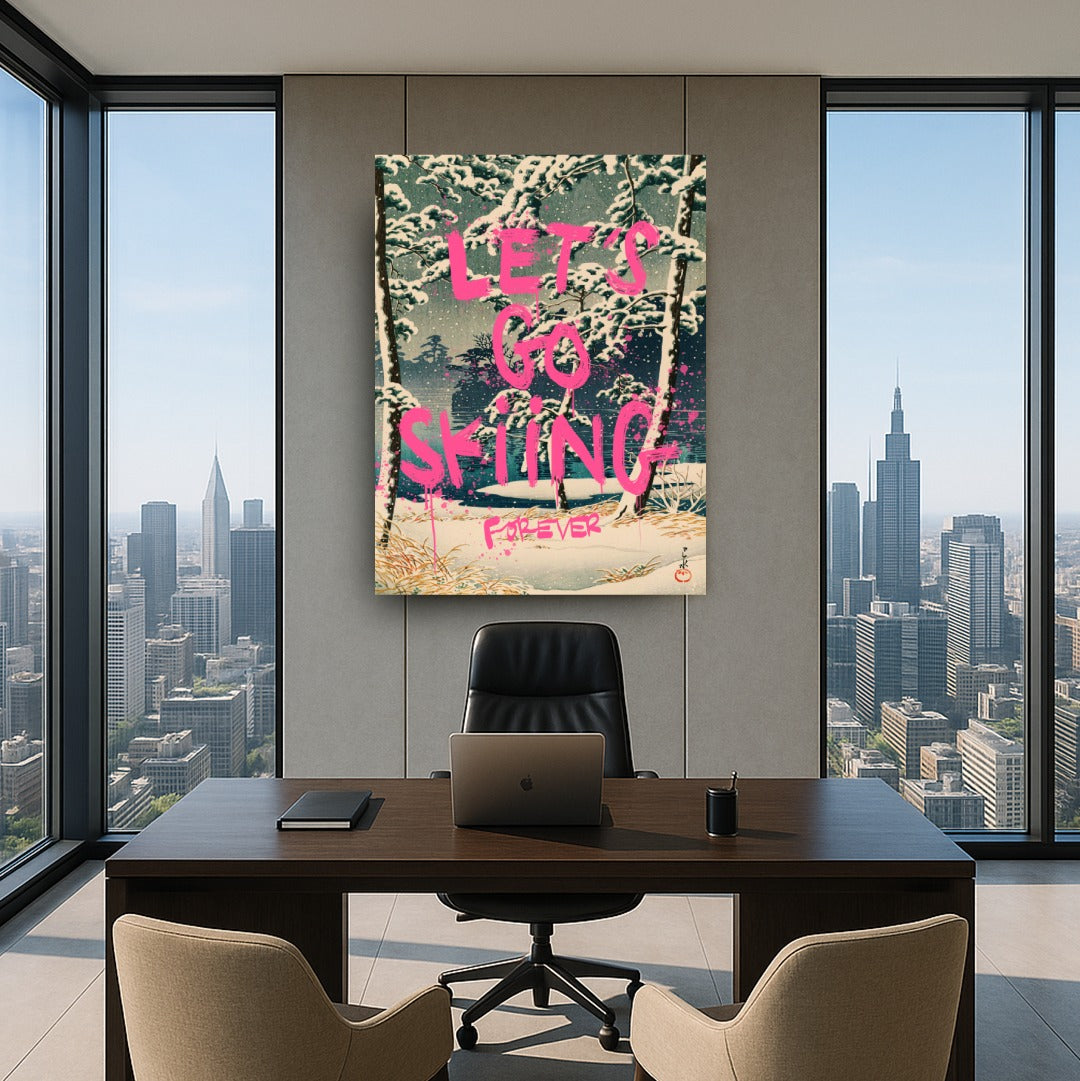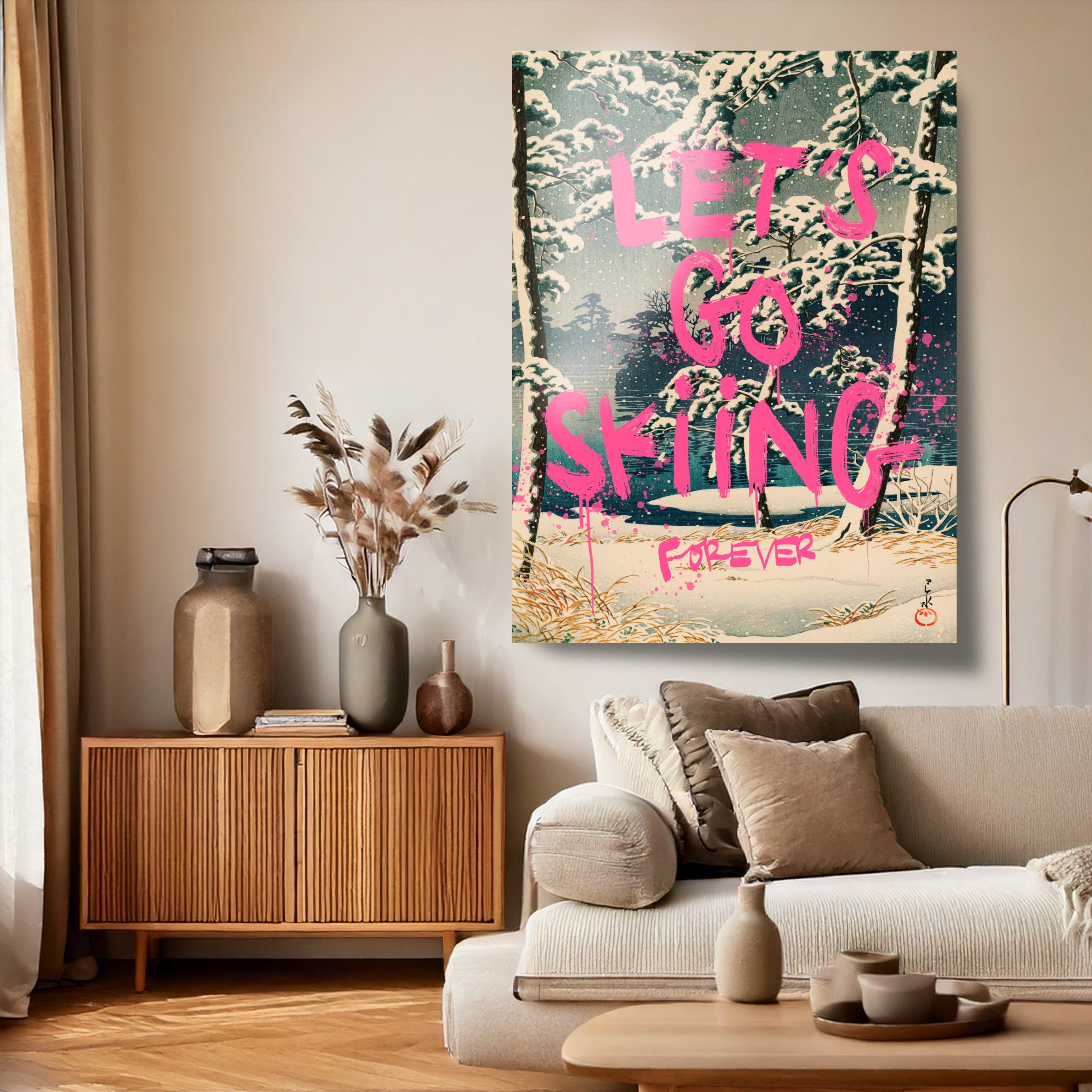 De koele blauwen, zachte witten en frisse accenten maken dit een stijlvol schilderij dat perfect past in chalets, woonkamers, kantoren en horeca. Let’s Go Skiing Forever brengt wintergevoel en vrijheid in elke ruimte, het hele jaar door.