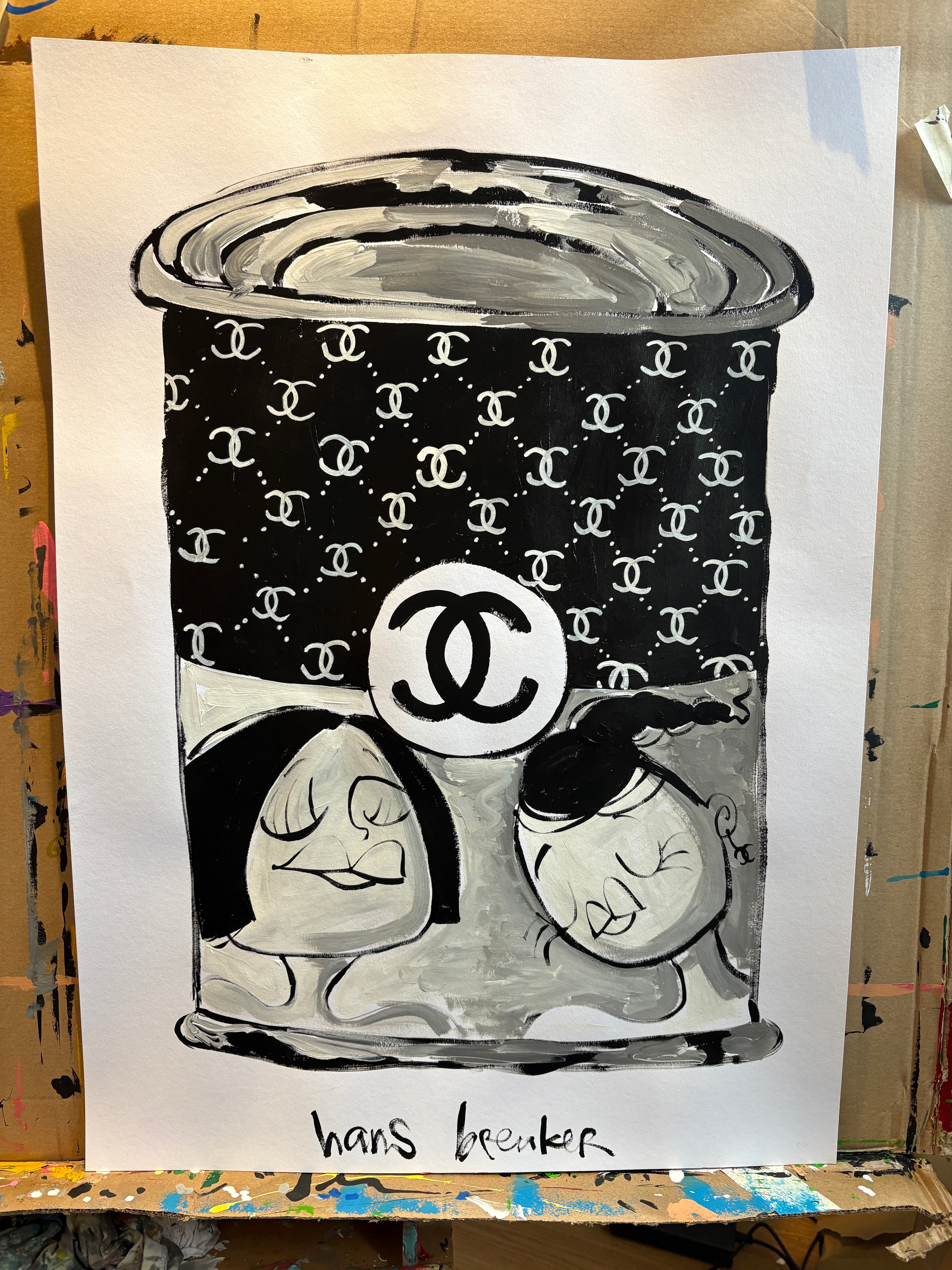 Chanel Bad Ladies – Good Life Soup ist ein ausdrucksstarkes und stilvolles Originalkunstwerk, das Luxus, Selbstbewusstsein und Unabhängigkeit vereint. Inspiriert von der ikonischen Form der Suppendose, wurde diese in ein High-Fashion-Pop-Art-Statement verwandelt, das Chanel-Referenzen und zwei selbstbewusste Bad Ladies zeigt.