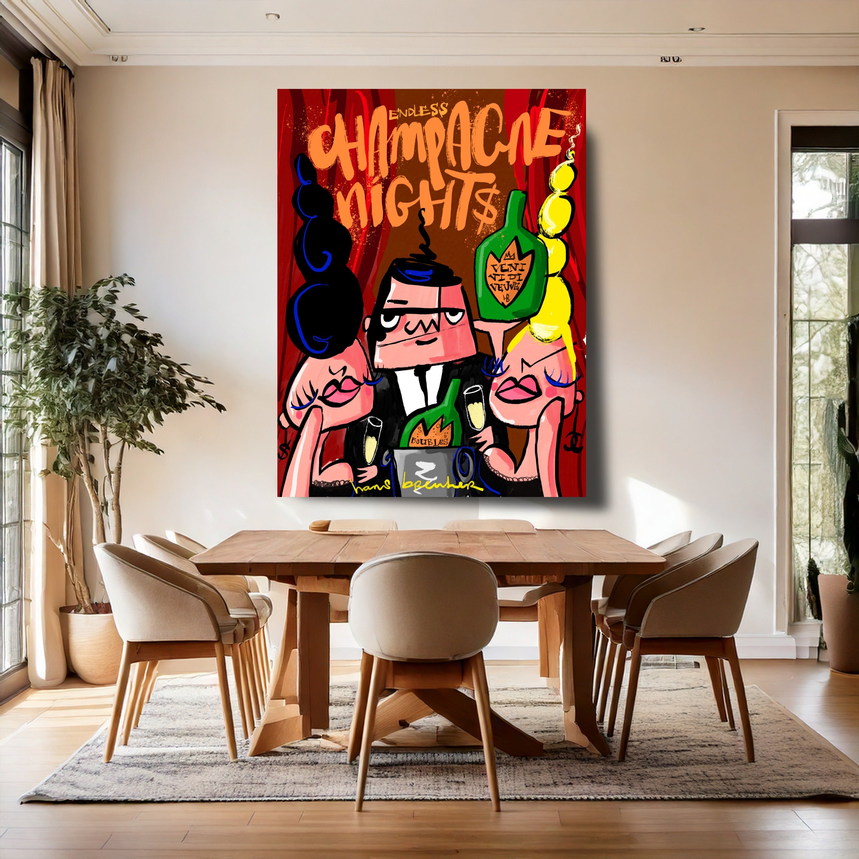 ✔ Modern champagne schilderij in pop art stijl ✔ Luxe uitstraling met krachtige kleuren ✔ Statement art voor design interieurs ✔ Ideaal voor horeca en hospitality concepten ✔ Herkenbare champagne thematiek (succes & celebration)