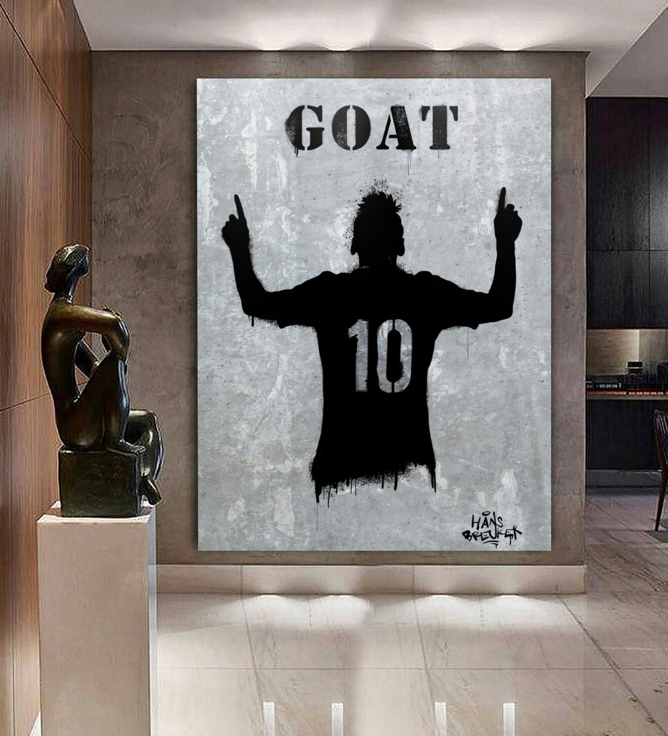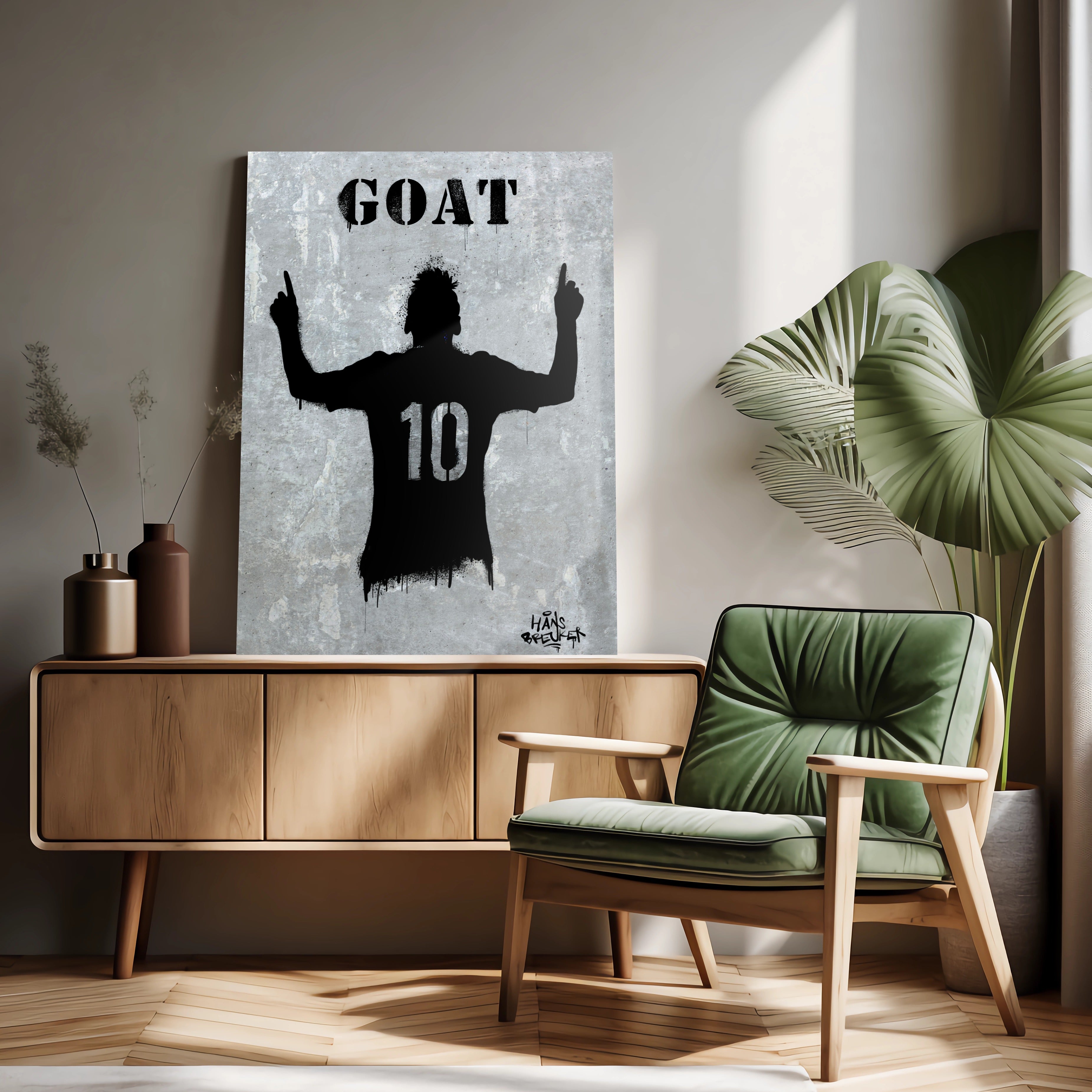 Holen Sie sich die Magie des Fußballs nach Hause mit diesem stilvollen und minimalistischen Kunstwerk, inspiriert vom unverwechselbaren Flair Lionel Messis. Kein Porträt, sondern eine ikonische Silhouette: ein Spieler mit der Nummer 10, die Arme erhoben, eingefroren in einem Moment puren Triumphs. Eine Hommage an Genie, Schlichtheit und das schwer fassbare Talent, das Millionen berührt.