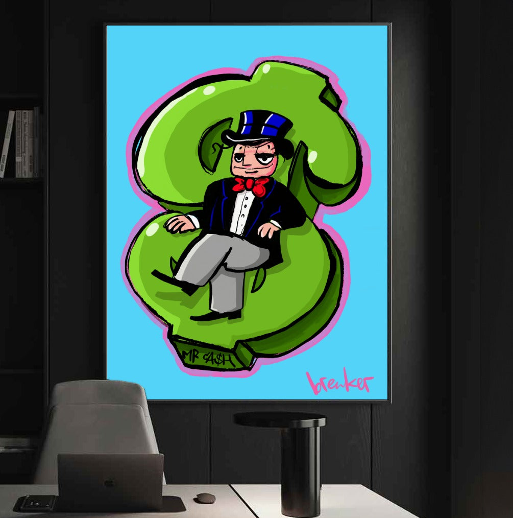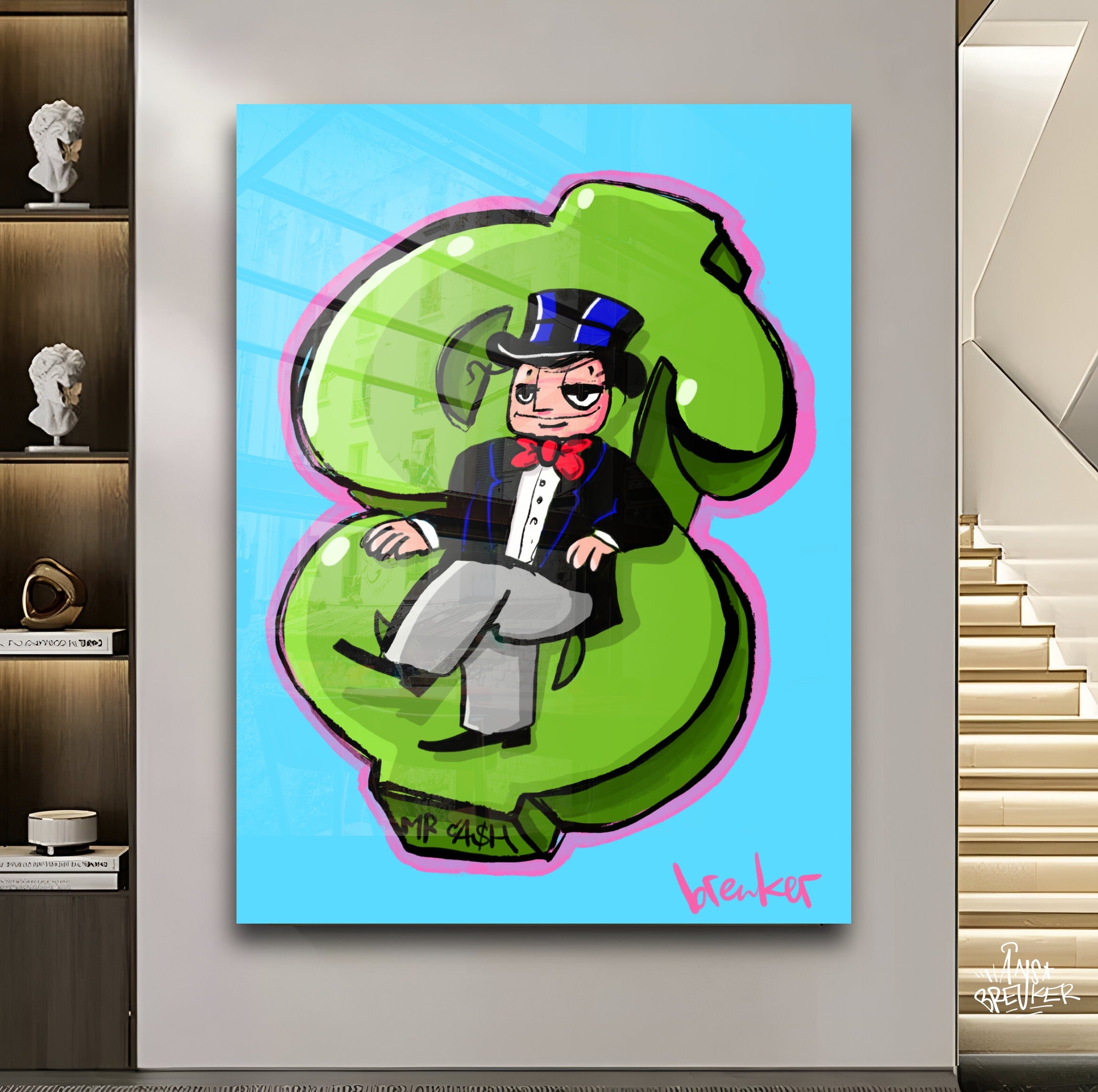My plexiglass works are delivered INCLUDING hanging system. Up to 120 x 80 cm with back frame. Large works with stainless steel spacers ensure stability when the work is hanging.