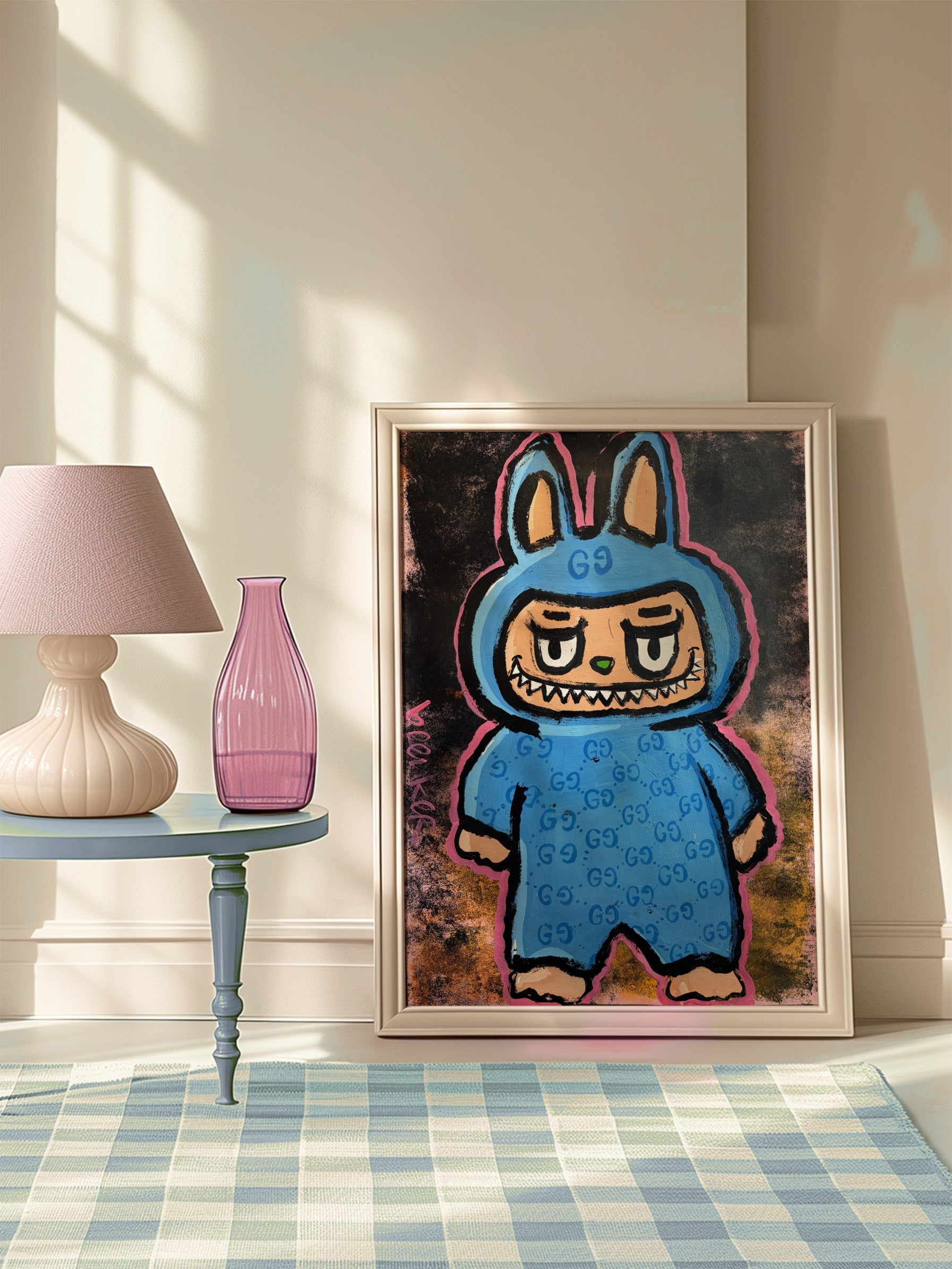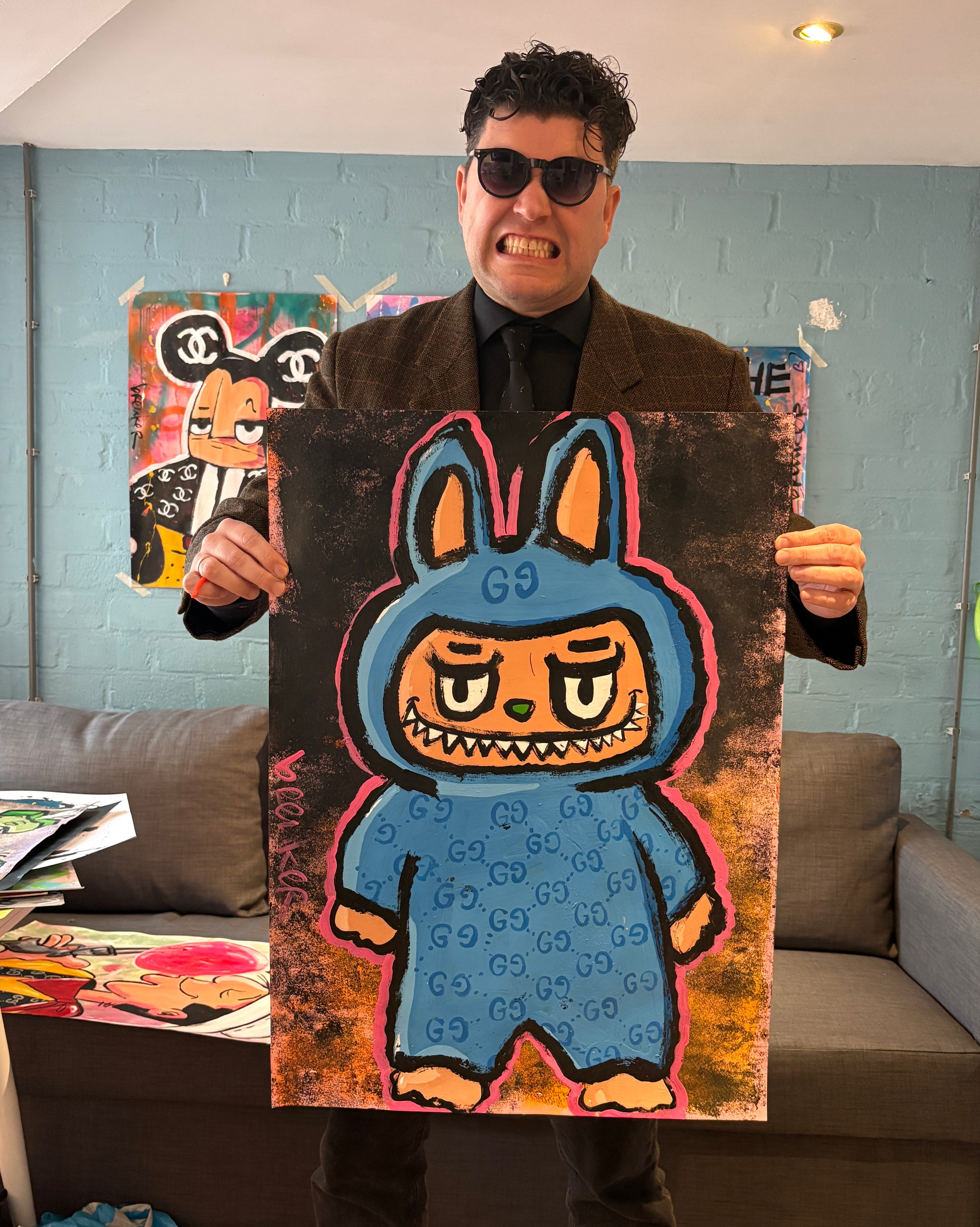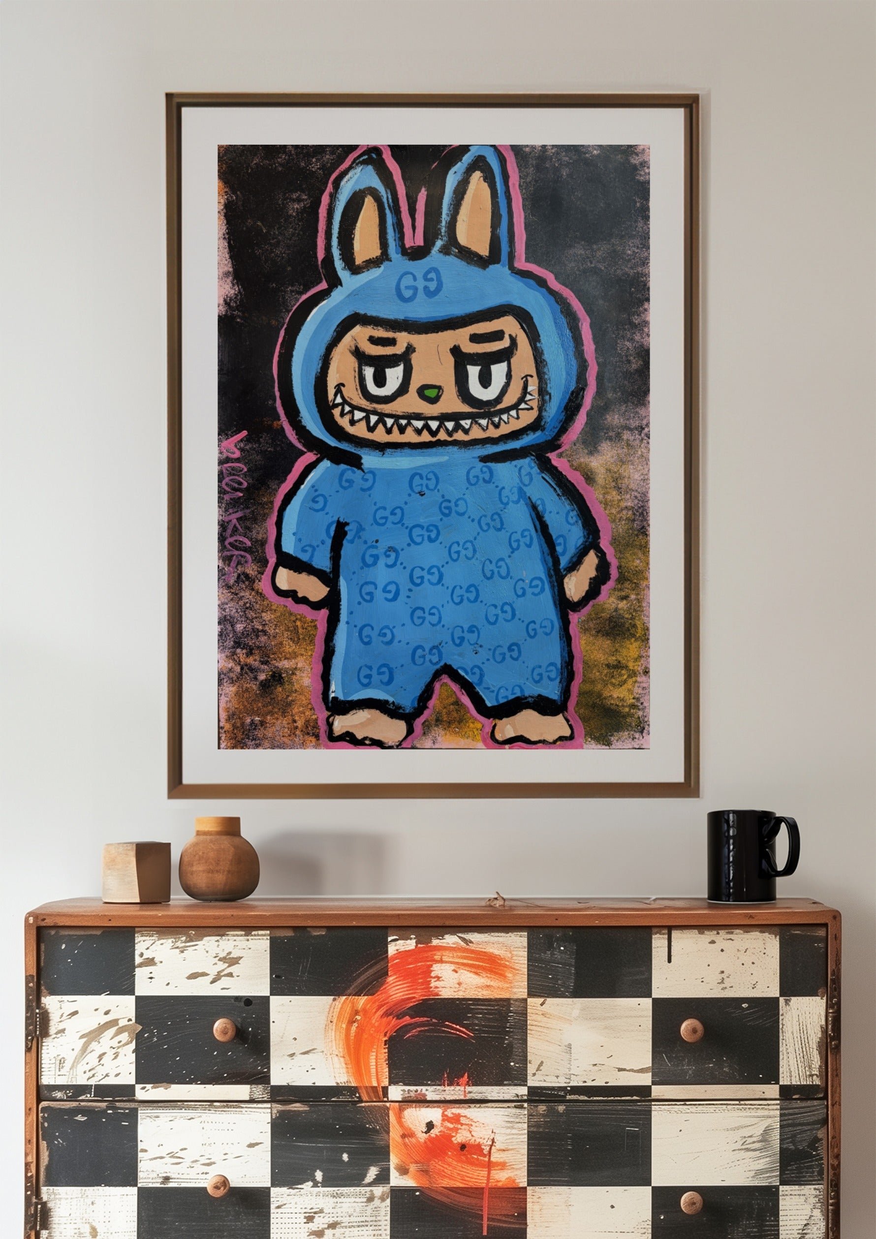 Is dit een ode aan Labubu? Een commentaar op hype-cultuur? Of gewoon een ijzersterk beeld dat klopt aan de muur?
