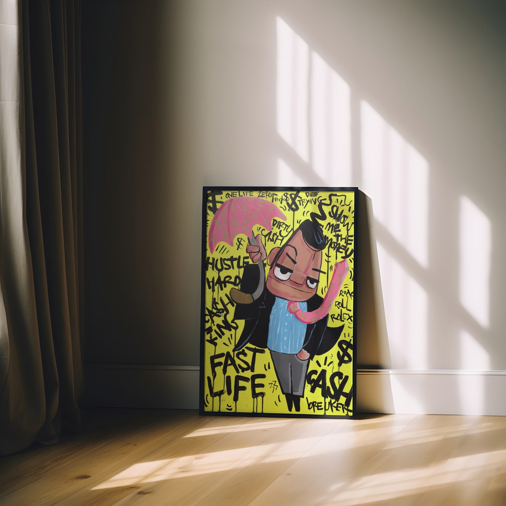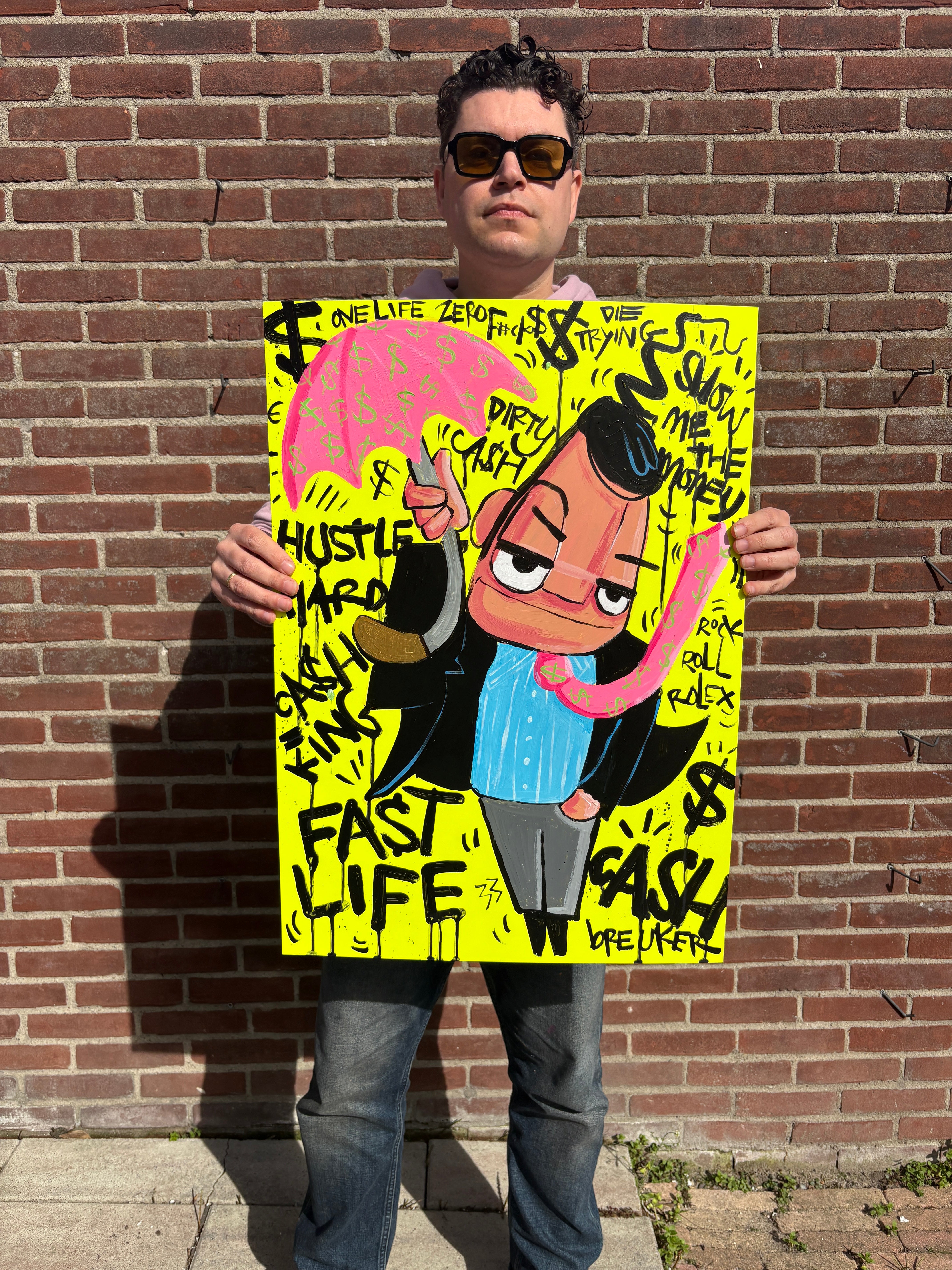 My plexiglass works are delivered INCLUDING hanging system. Up to 120 x 80 cm with back frame. Large works with stainless steel spacers ensure stability when the work is hanging.