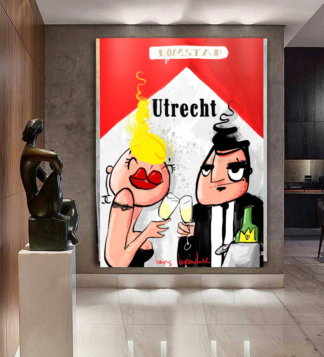 My plexiglass works are delivered INCLUDING hanging system. Up to 120 x 80 cm with back frame. Large works with stainless steel spacers ensure stability when the work is hanging.