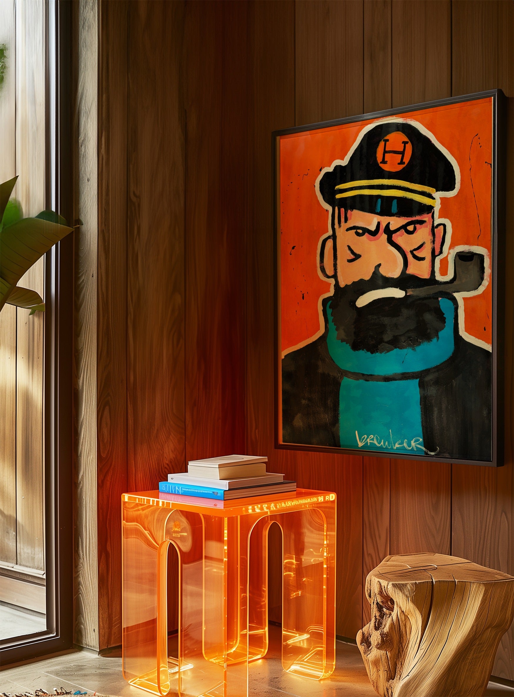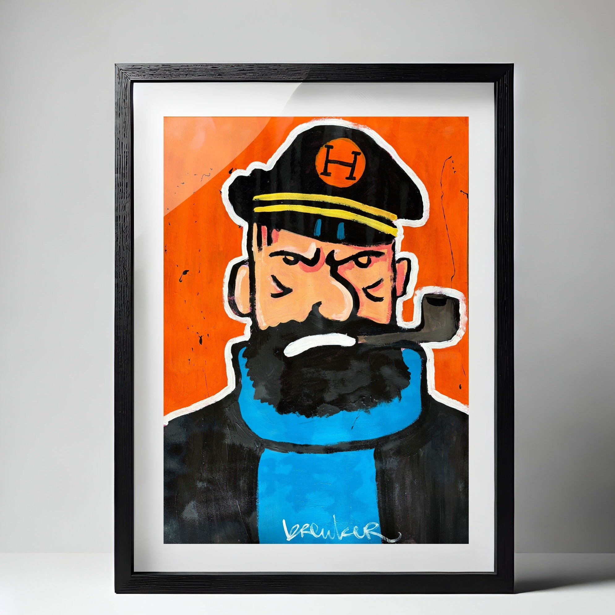 Kapitein Haddock is natuurlijk de legendarische scheepskapitein uit de avonturen van Kuifje: eigengereid, temperamentvol en goudeerlijk. Die ruige maritieme energie voel je in dit portret—een ode aan zijn onverzettelijke karakter.