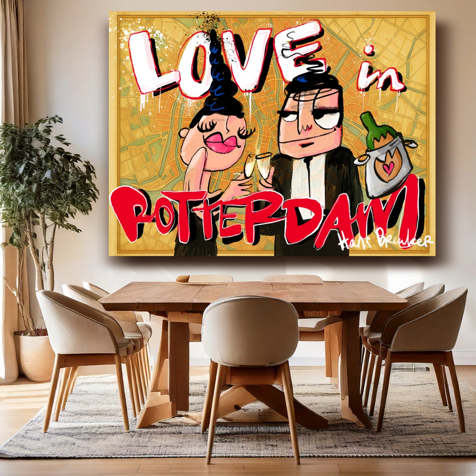 Love in the air! Samen proostend op het leven. Kleurrijk ontmoet klassiek op deze vintage plattegrond van Rotterdam. Een mooie aanvulling op je interieur.