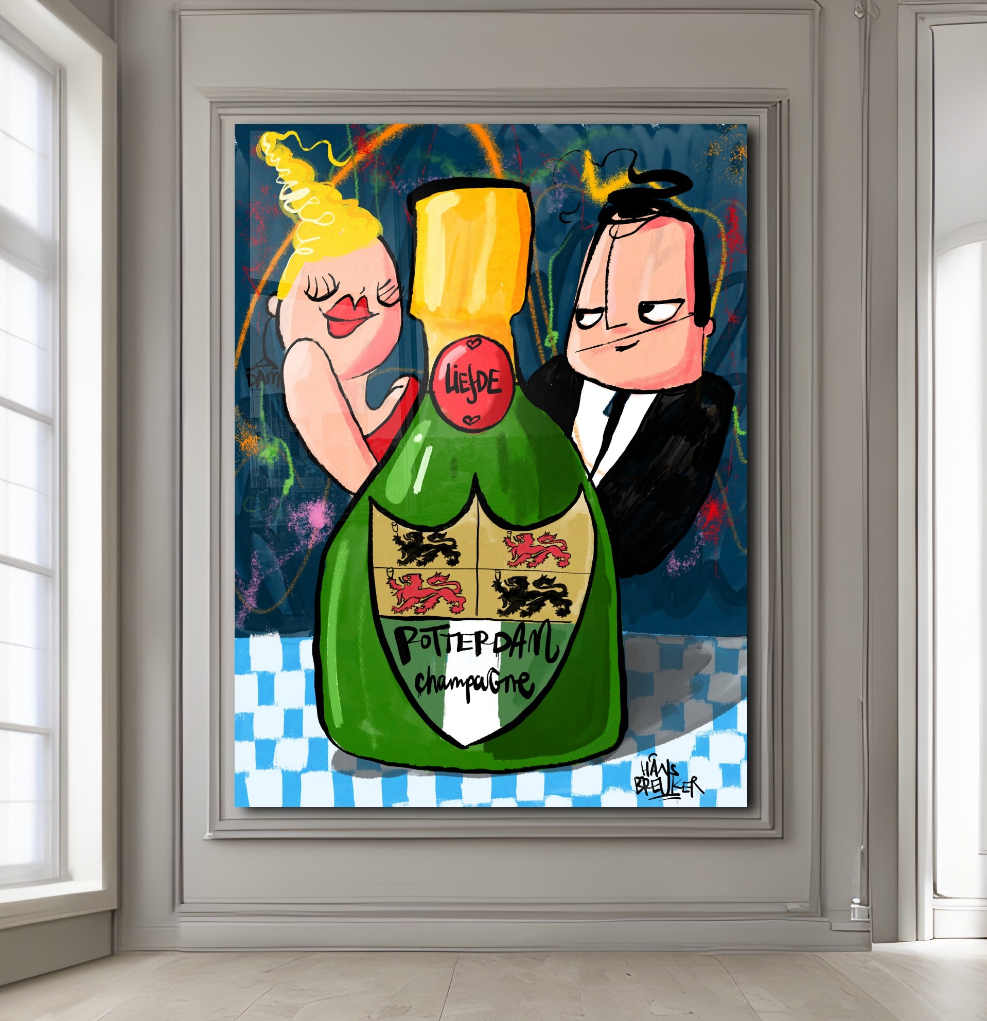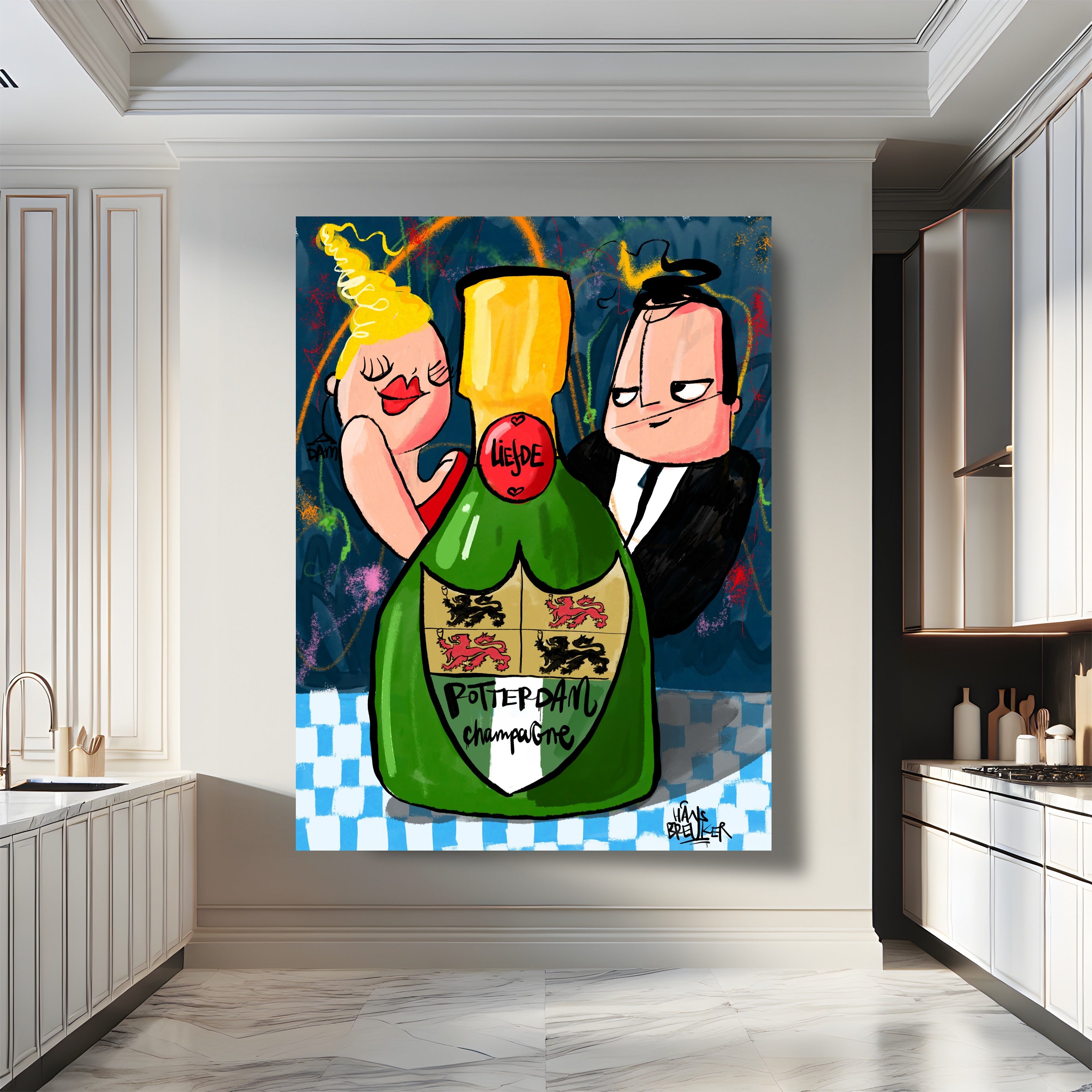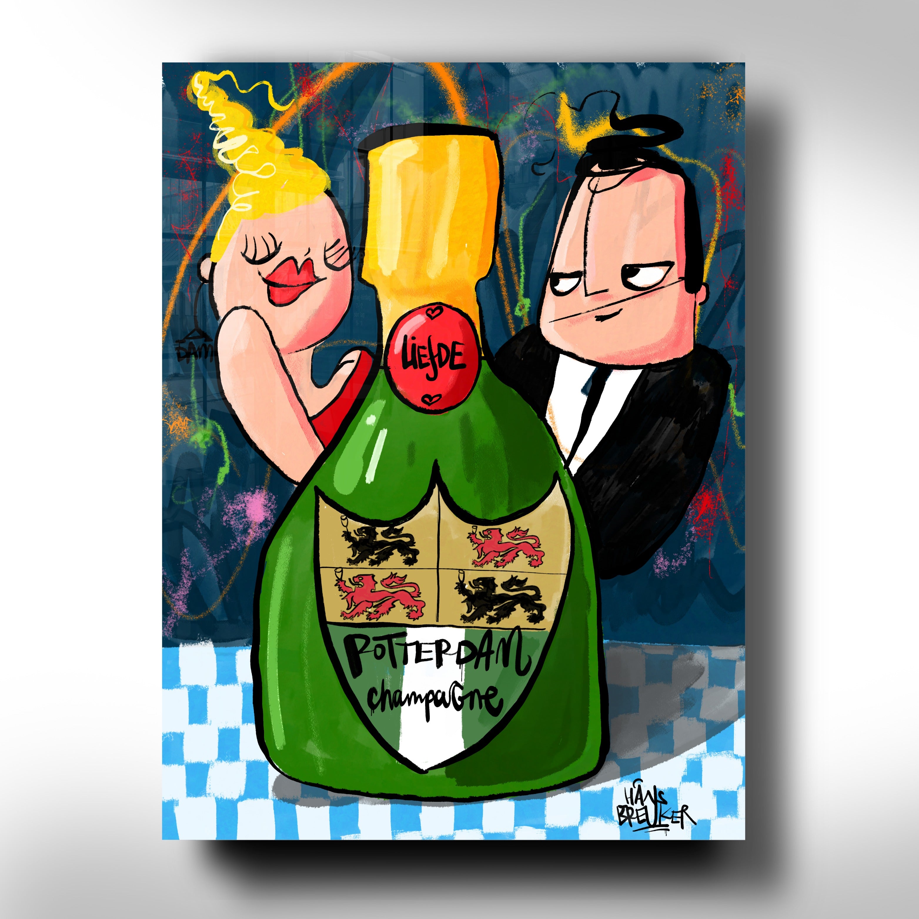 Rotterdam champagne, twee lovers die proosten op het leven, de liefde en natuurlijk: Rotterdam!