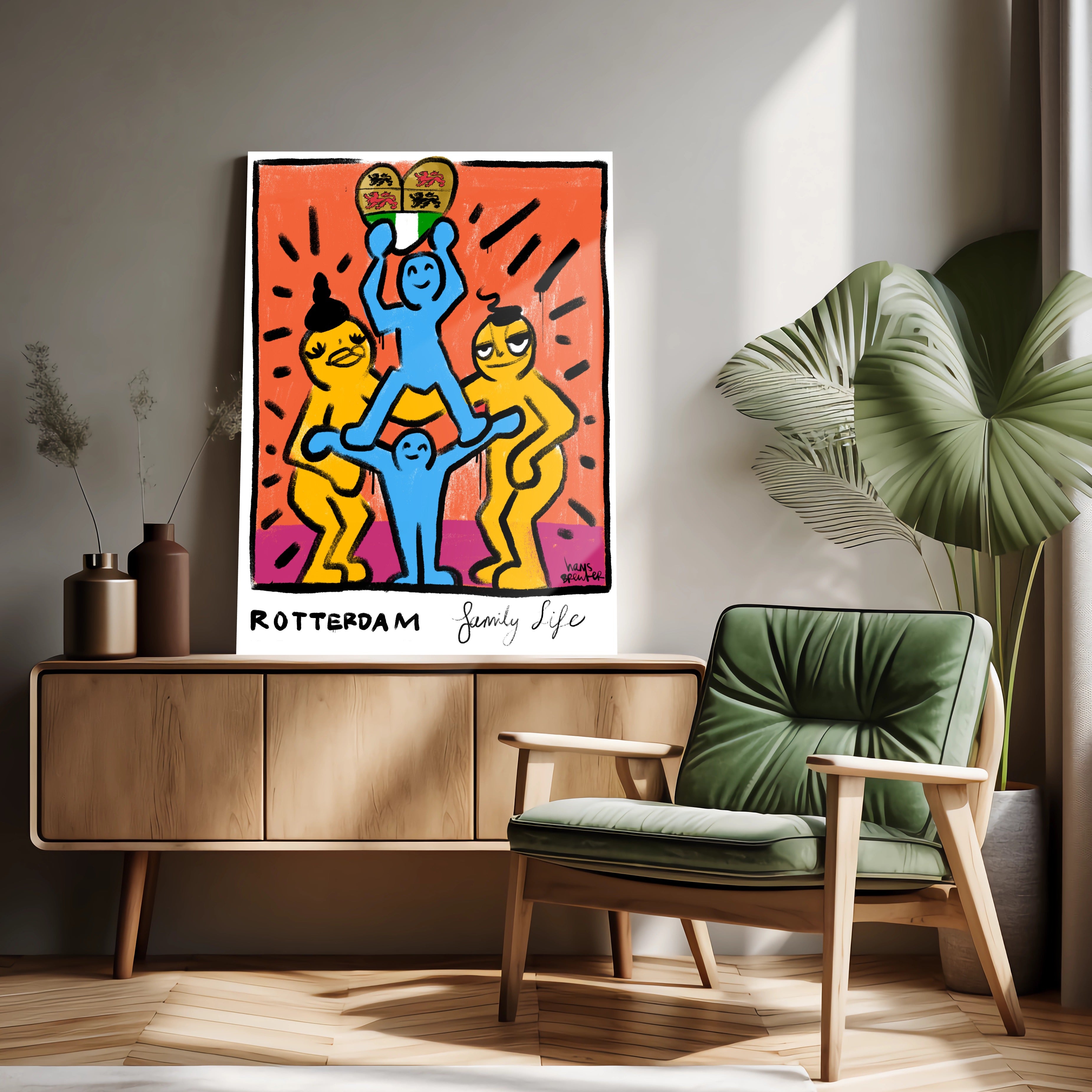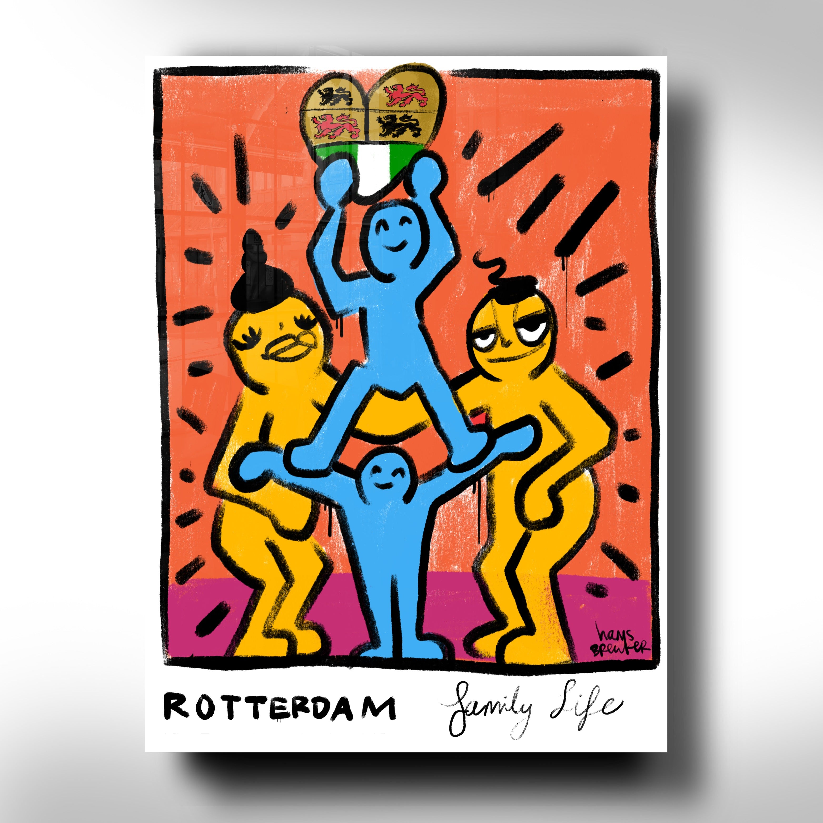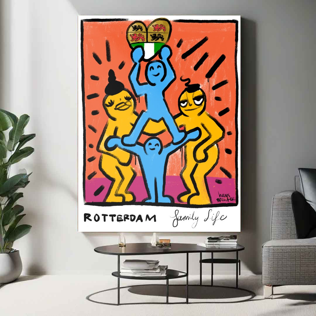 Rotterdam family life. Vier het familie leven in Rotterdam met deze pop art print die vrolijk en gelukkig maakt.